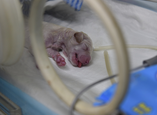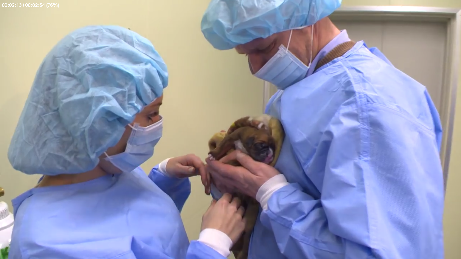Под наркозом щенков вынимают из суррогатной матери, чтобы исключить риски естественных родов