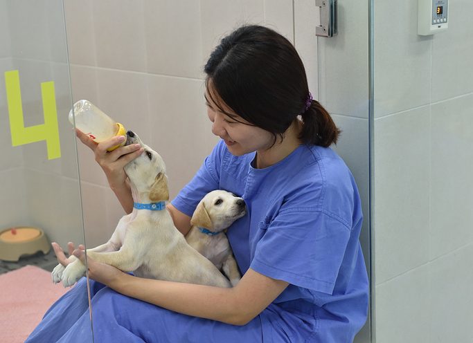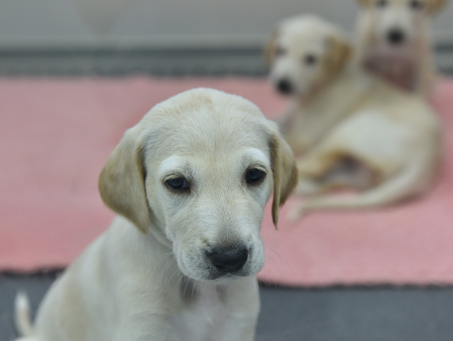 3 месяца щенки живут в лаборатории с мамой и о них заботятся сотрудники лаборатории